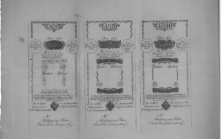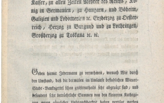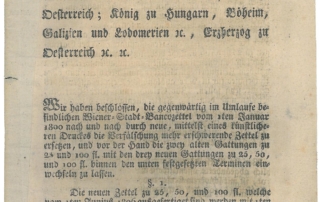 Patent zur 5, 10, 25, 50, 100, 500 und 1000 Gulden Ausgabe von 1796