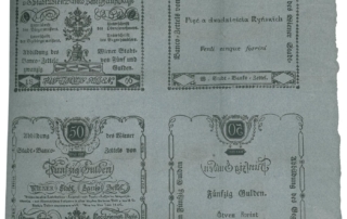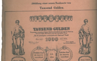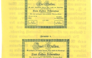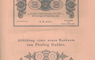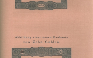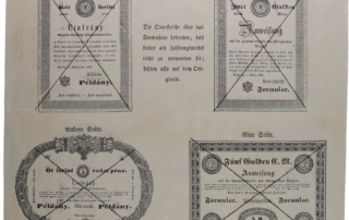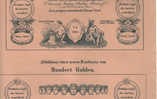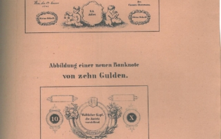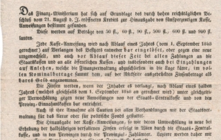 Cirkular zur 10, 25, 50, 100, 500 und 1000 Gulden Cassa-Anweisung Ausgabe von 1849 (Ausgabe mit rosa Unterdruck)