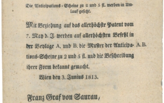 Patent zur 10 und 20 Gulden Ausgabe von 1813