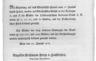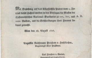 Cirkular zur 100, 500 und 1000 Gulden Ausgabe von 1816