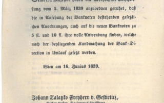 Cirkular zur 5, 10, 25 und 50 Gulden Ausgabe von 1816