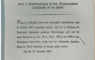 Cirkular zur 5, 10, 50, 100 und 1000 Gulden Ausgabe von 1841