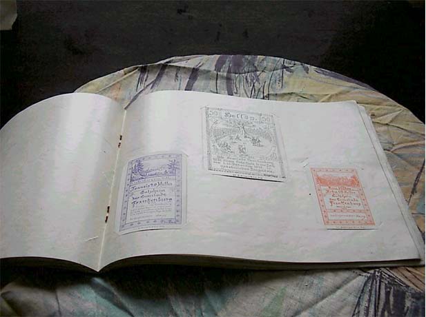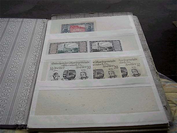 Darüber hinaus wurden Notgeldscheine, ähnlich wie bei den Briefmarken „gefalzt“. Und auch Briefmarkenalben mussten „herhalten“.
